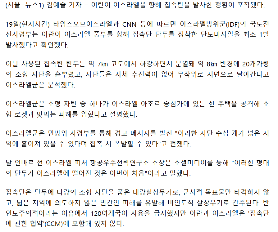 한편 이란한테 미사일 그만 쏘라고 간청하는 이스라엘 하레디